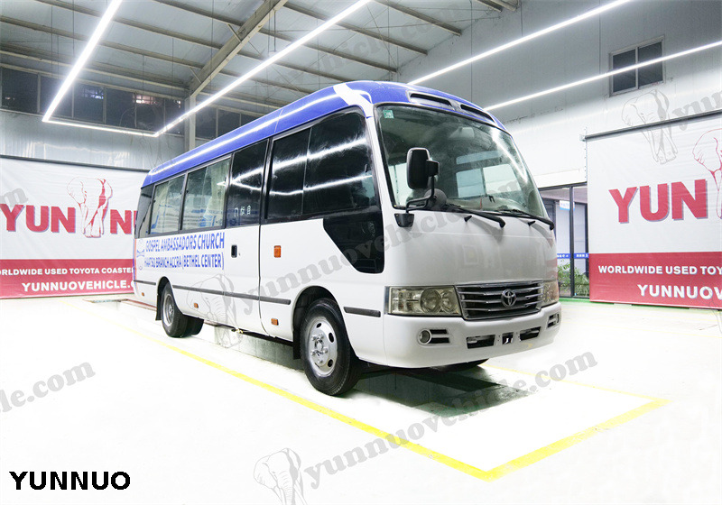 Le Toyota Coaster d'occasion remis à neuf de Shandong Yunnuo avec moteur diesel N04C a été entièrement rénové et est prêt à être livré à notre client au Ghana. Pour les Toyota Coasters d'occasion et personnalisés, faites confiance à Shandong Yunnuo.
